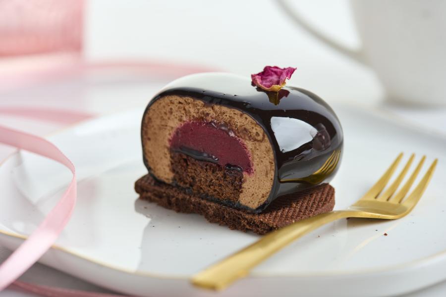 Zloženie: Coeur vanilla-malina - Malinové pyré, kryštálový cukor, pektín NH, mlieko, šľahačka, vanilkový bourbon, vajcia, ,želatínová masa, hnedý cukor, soľ, mandľová múka, maslo, kukuričná múka, ryžová múka, zemiakový škrob a kypriaci prášok.